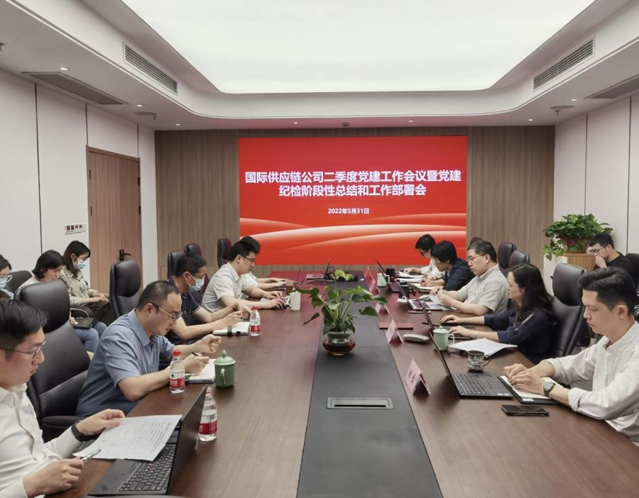 5月31日上午,国际供应链公司召开二季度党建工作会议暨党建纪检阶段性总结和工作部署会。公司领导班子、本级部室(事业部)负责人、国经公司党支部及本级党支部支委参加了会议。
